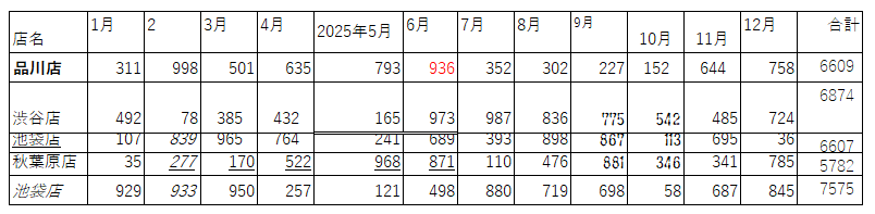 でもまだ、どの店舗が成績がよいかぱっと見て分かりませんね。