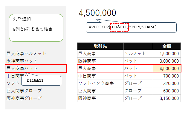 検索キーを結合(&)する作業列の作り方