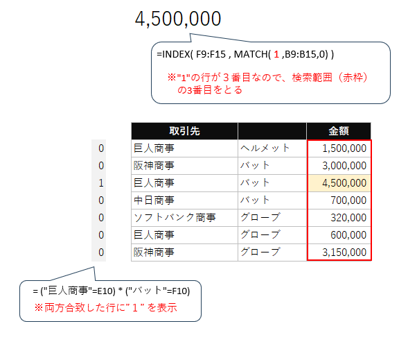 【方法3】INDEX関数とMATCH関数の組み合わせによる複数条件検索