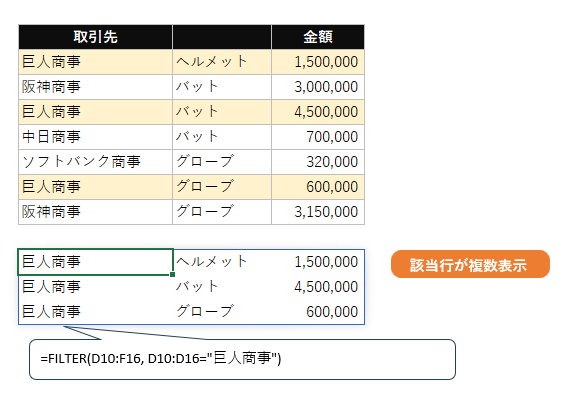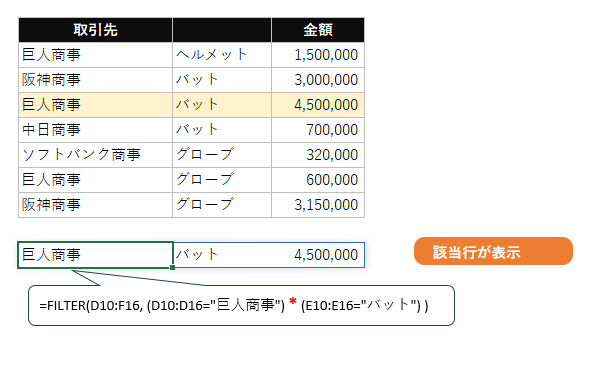 【方法4】FILTER関数で複数条件に一致する全データを抽出する