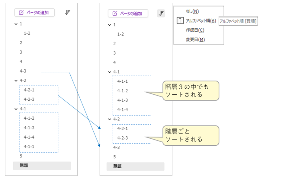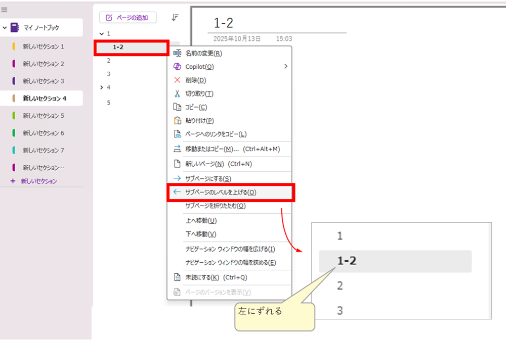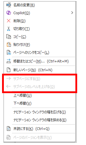 OneNoteでは複数のページをまとめてサブページ化することができます。